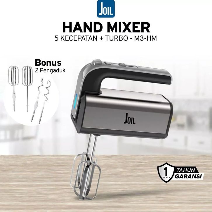 Gratis Ongkir / Joil Hand Mixer Ergonomis 5 Kecepatan + Turbo Stainless Steel Food Grade - M3-HM