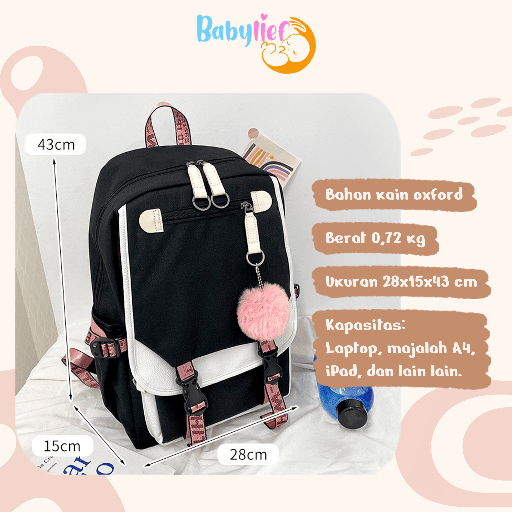 Babylief Tas Wanita – Tas Backpack Wanita/Perempuan Tas Sekolah Fhasion Wanita SD SMP SMA Tas Sekolah Tas Kapasitas Besa