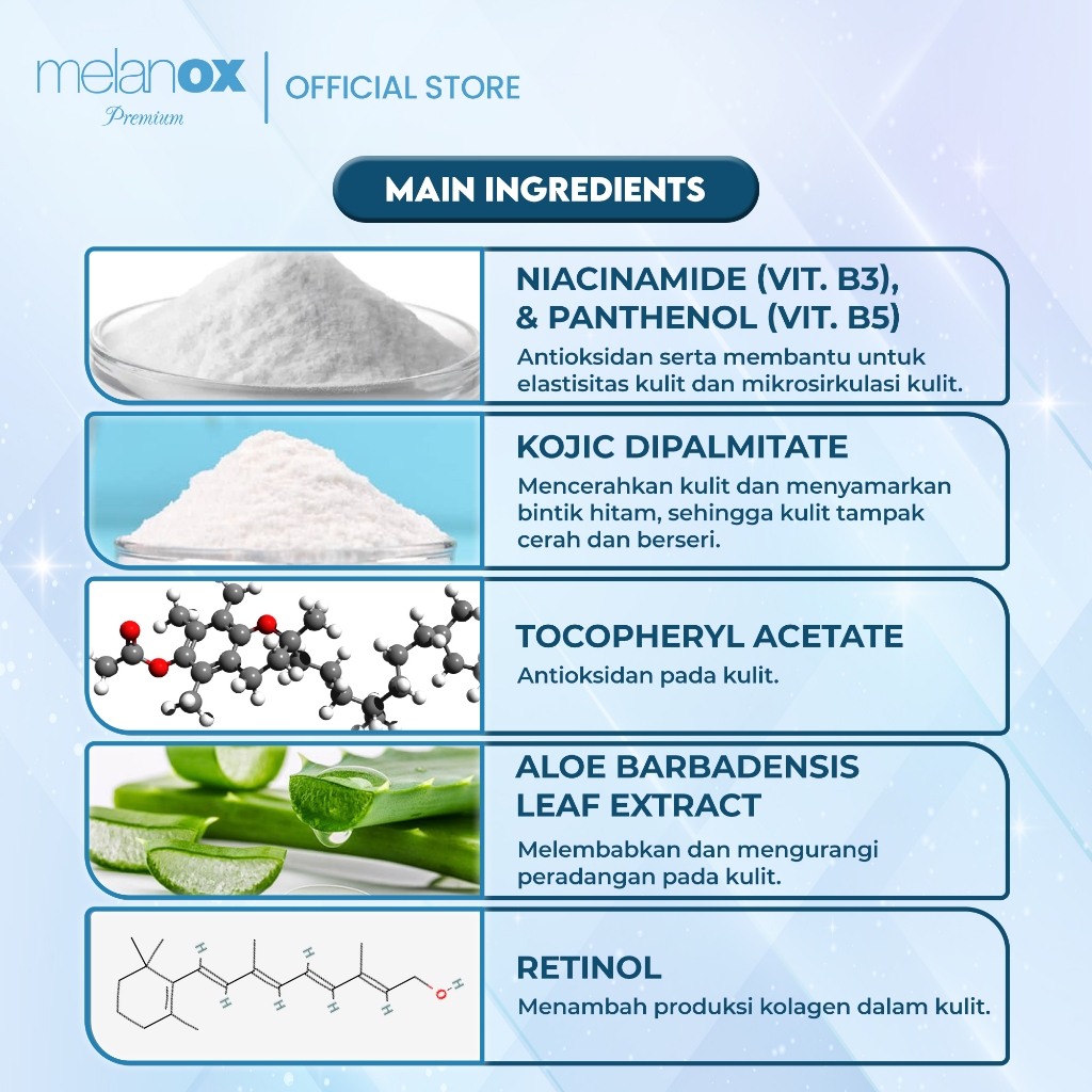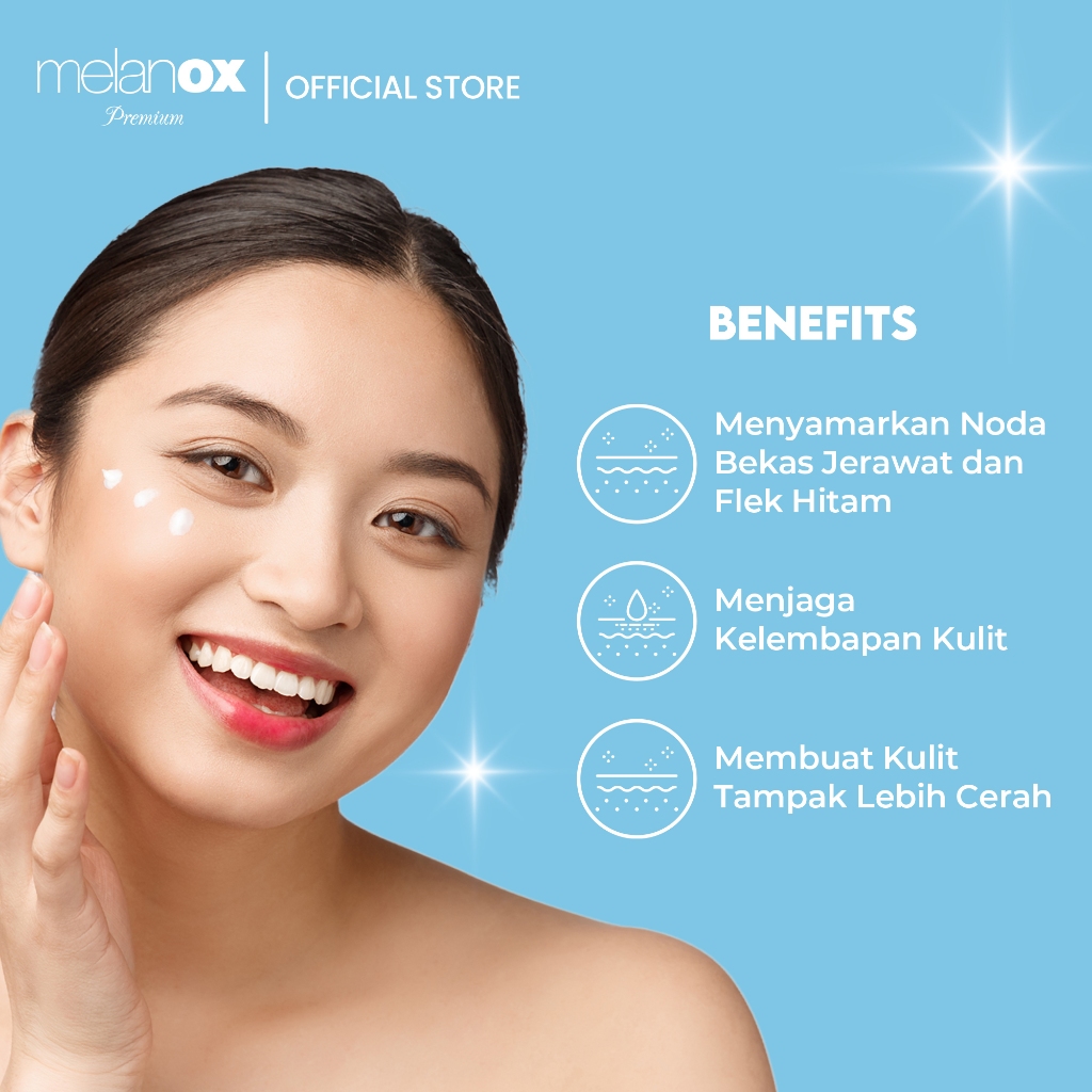 CREAM PEMUTIH WAJAH MELANOX PREMIUM WHITENING KRIM 14GR MENGANDUNG NIACINAMIDE PATHENOL RETINOL MENYAMARKAN NODA BEKAS J