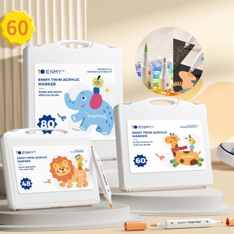 Set 24/36/60/80 Warna Twin Acrylic Marker Yang DIY Painting Spidol Pastel Pulpen Highlight Drawing Warna spidol warna warni Spidol Akrilik Marker