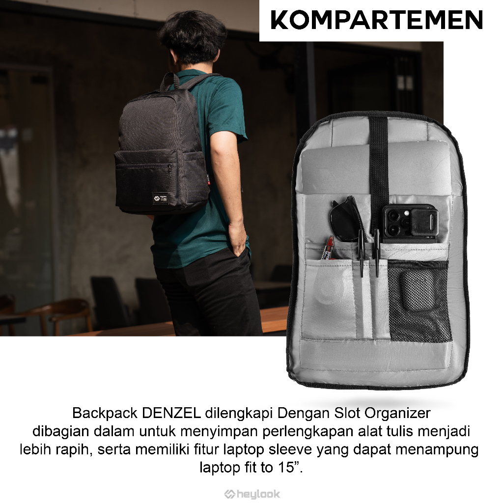 HEYLOOK Official - Tas Ransel Laptop DENZEL 3.0 Waterproof Backpack Pria Tas Leptop 14 - 15inch Anti Air Tas Sekolah Tas