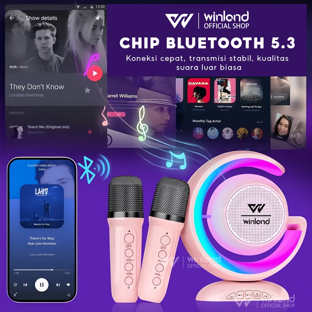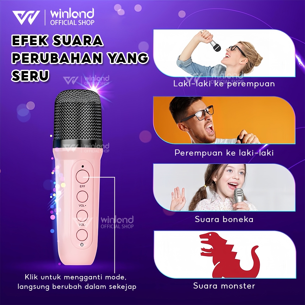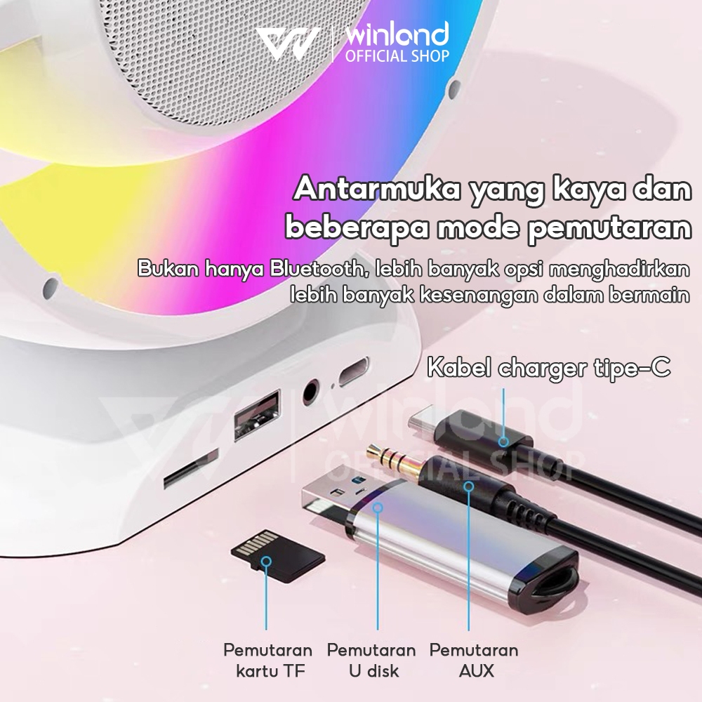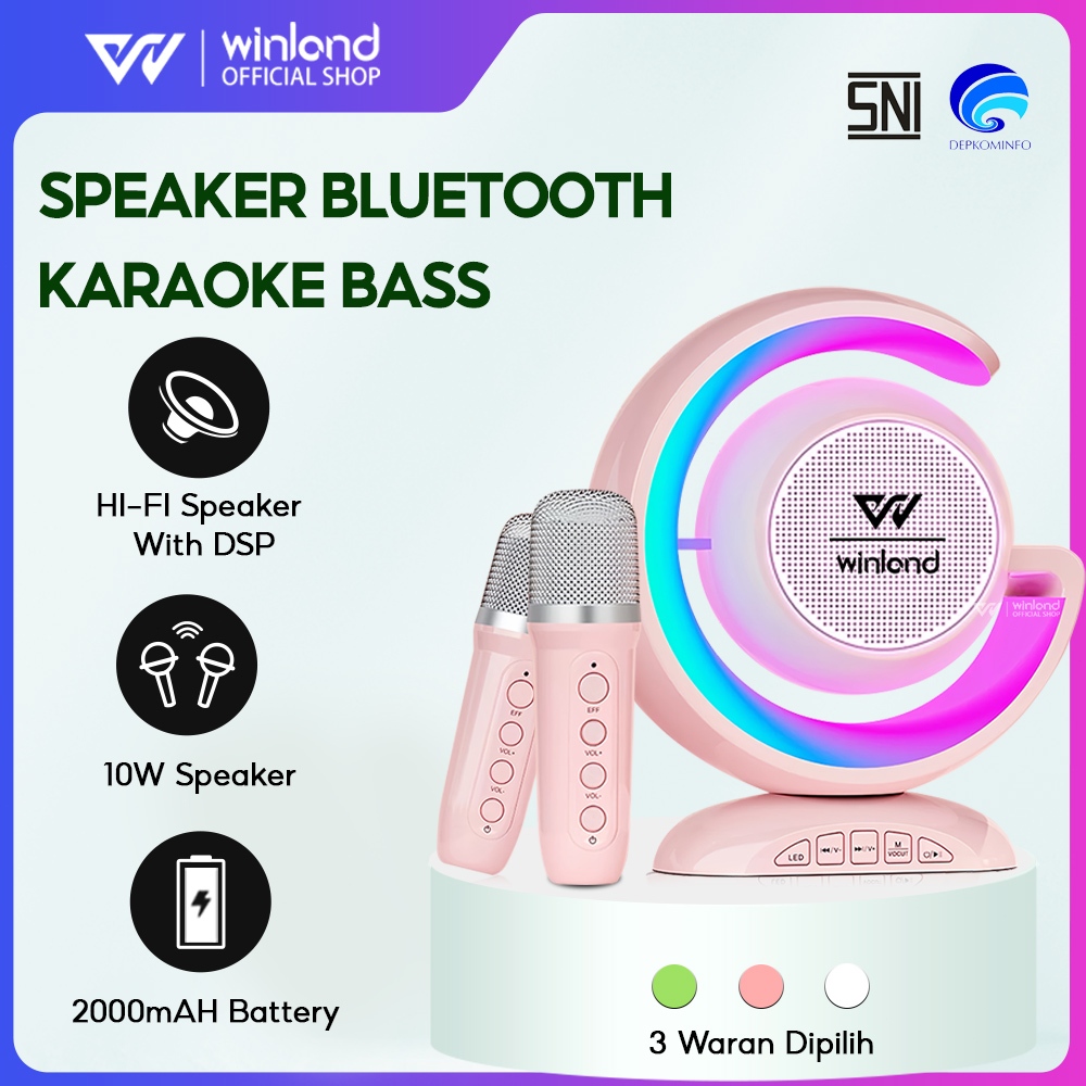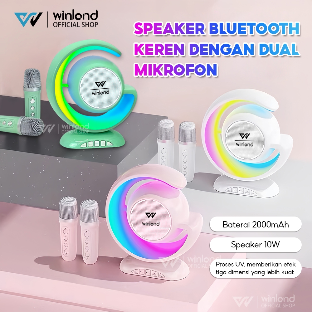 []Winland Speaker Karaoke 2 Microphone Set Bluetooth Mini Full bass Portable speaker bluetooth bass