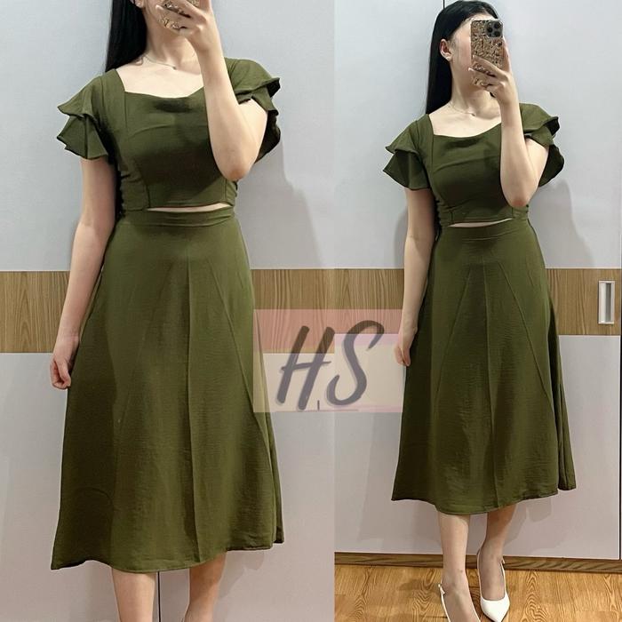 STELAN ROK ANGEL set crop top + rok angel Setelan Wanita Casual