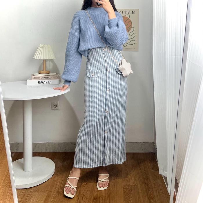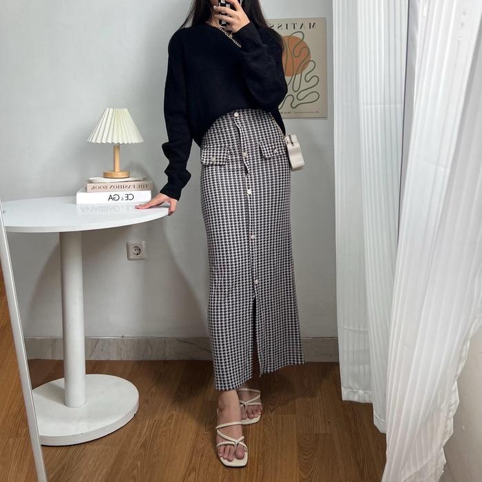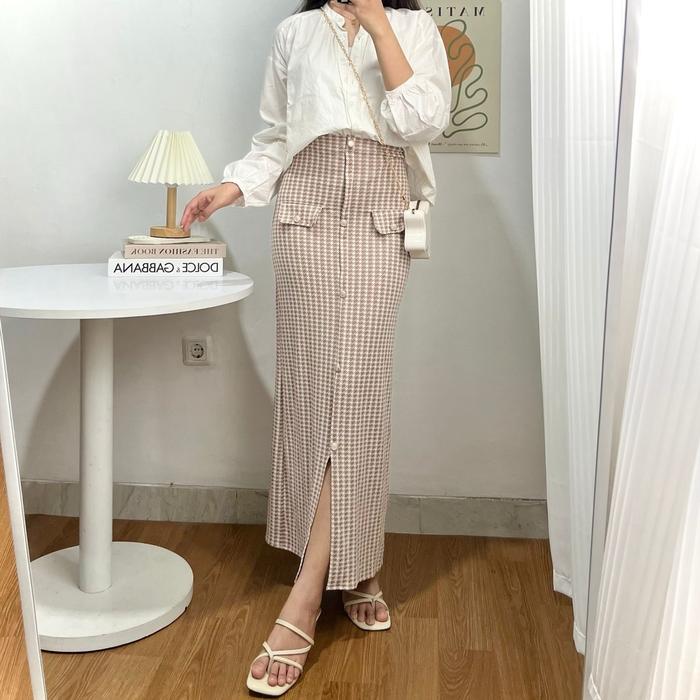 Dexalove - Yunda Rok Karet Panjang Kancing Wanita Cantik Motif Nyaman