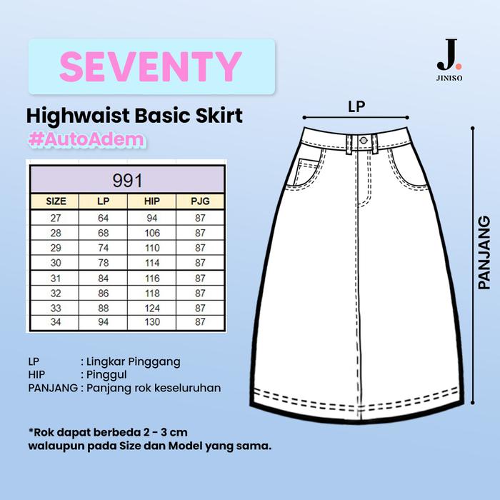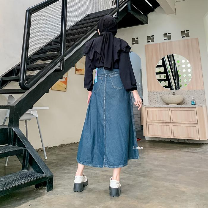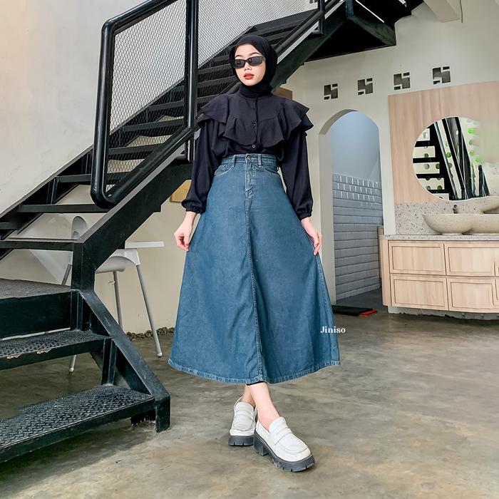 JINISO SEVENTY - 991 Basic Highwaist Rok Jeans Wanita Warna Ocean Blue