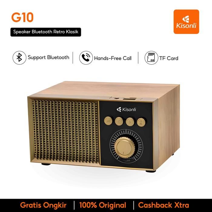 KISONLI - Speaker Bluetooth Portable Retro Klasik - G10 - Wood