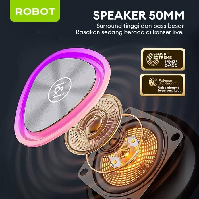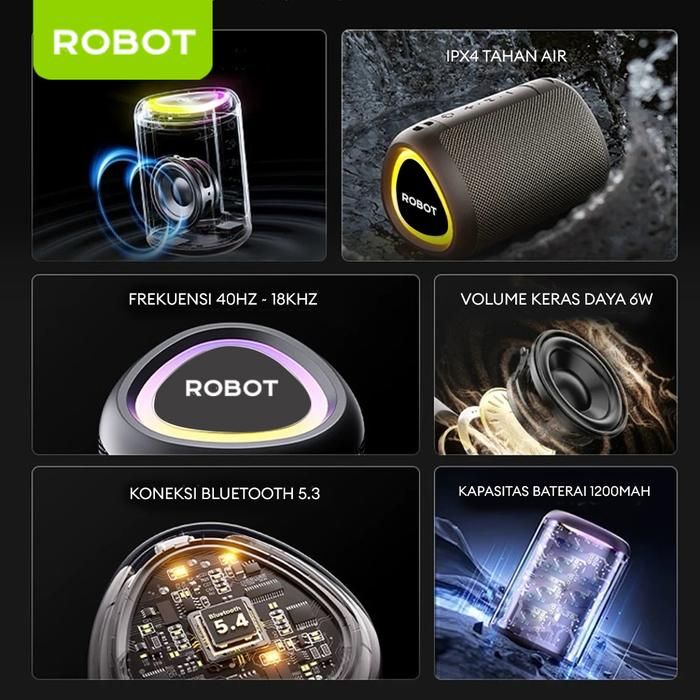 ROBOT RB120 Speaker Bluetooth 5.3 RGB Waterproof IPX4 Portable 8 Jam Putar Musik Speaker Bass Outdoor Indoor Garansi 1