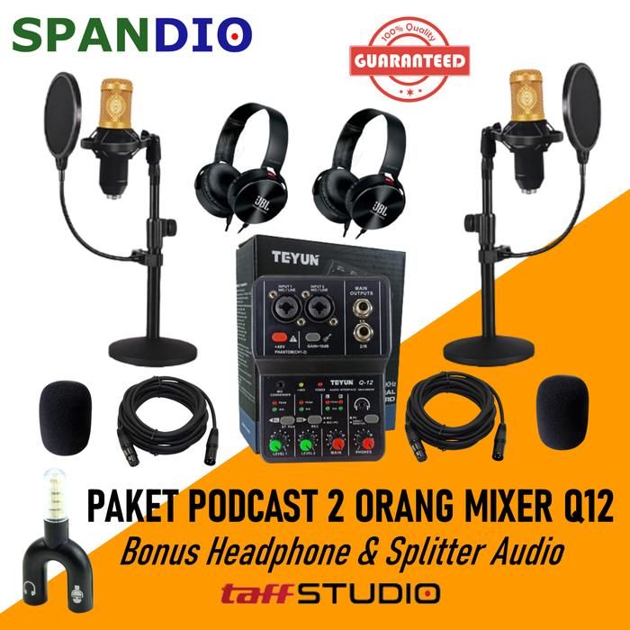 PAKET P00DCAST 2 Orang Mic Microphone Bm800 Mixer V8s V8 Plus Lengkap - SF666 V8