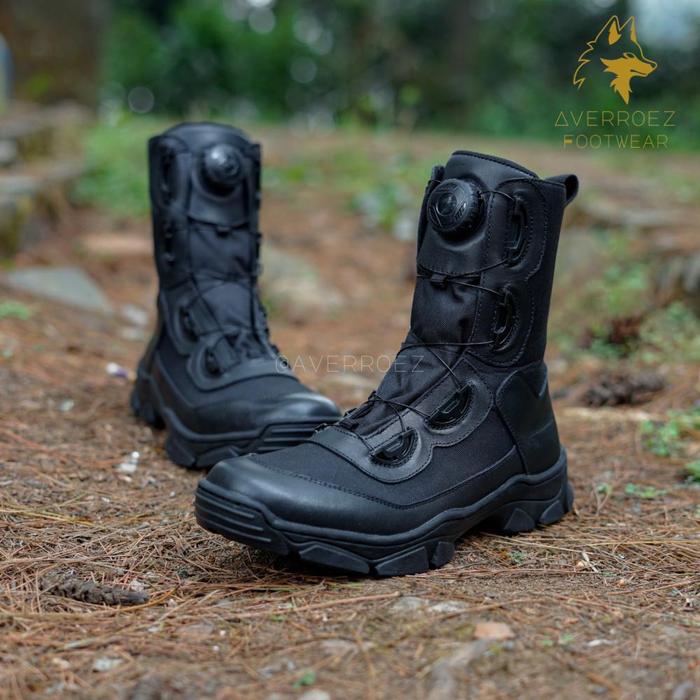 Sepatu PDL Tali Putar TNI Polri Satpam Security Model Mortal Kulit Sapi Asli Hitam Dop - Boots,