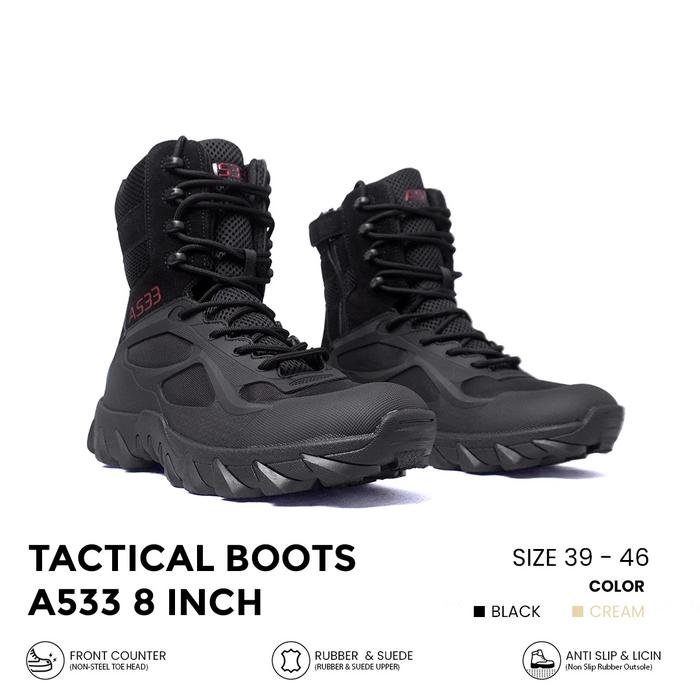 Sepatu Tactical A533 8 Inch Cream Gurun hitam- Sepatu PDL Tactical Outdoor Boots - Shoes