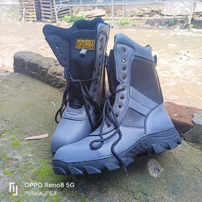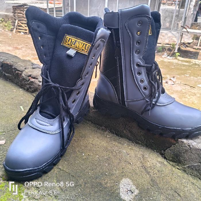 Sepatu PDL Linmas Abu-Abu Hitam Panjang 8inch Bahan Sintetis Karet Boots