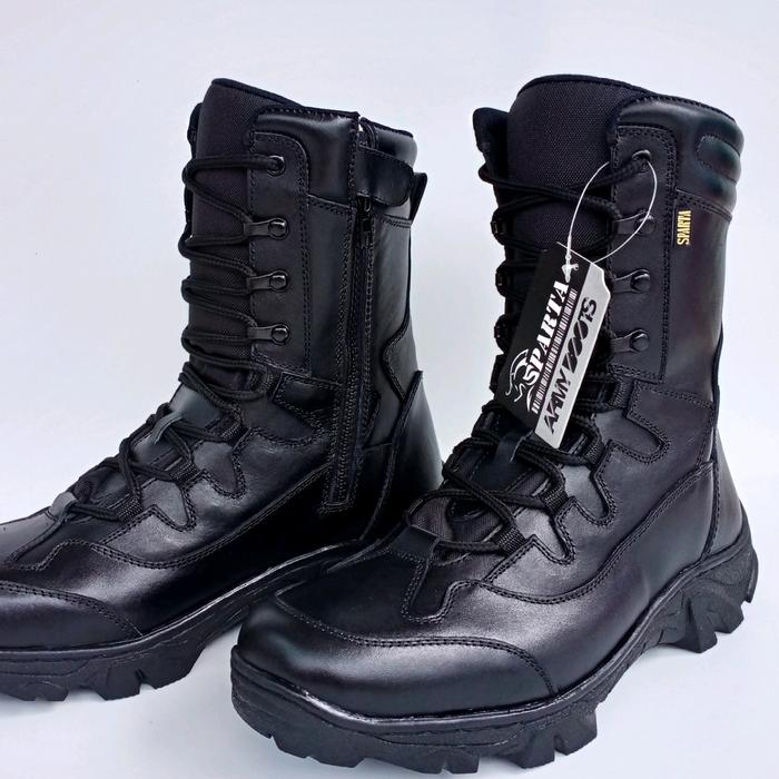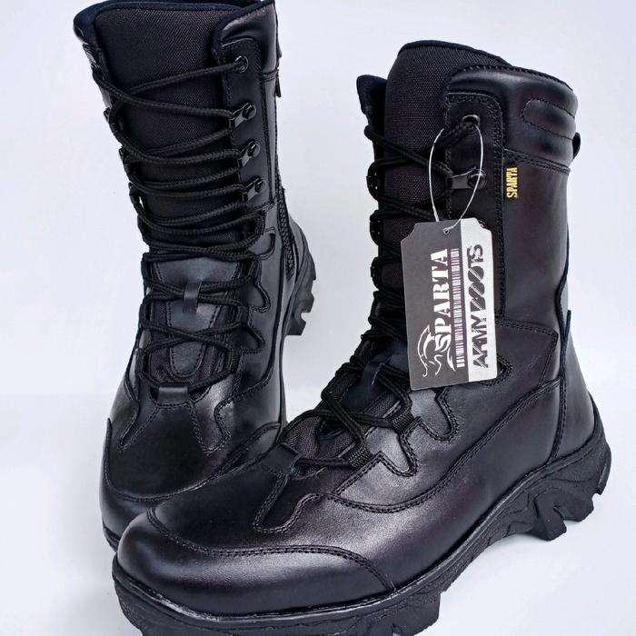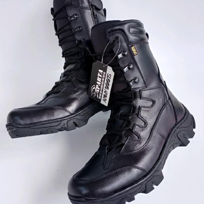 sepatu pdl kulit dop 056 sparta Boots Hitam Shoes Steel Brown Karet Pria