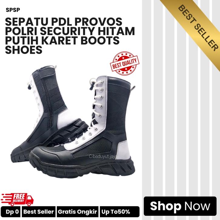sepatu PDL provos POLRI security HITAM PUTIH Karet Boots Shoes