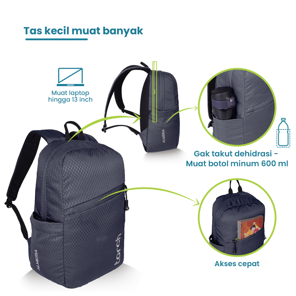 TORCH Almeria Tas Ransel Sekolah Kerja Travelling Laptop Pria Wanita Tahan Air 17 Liter