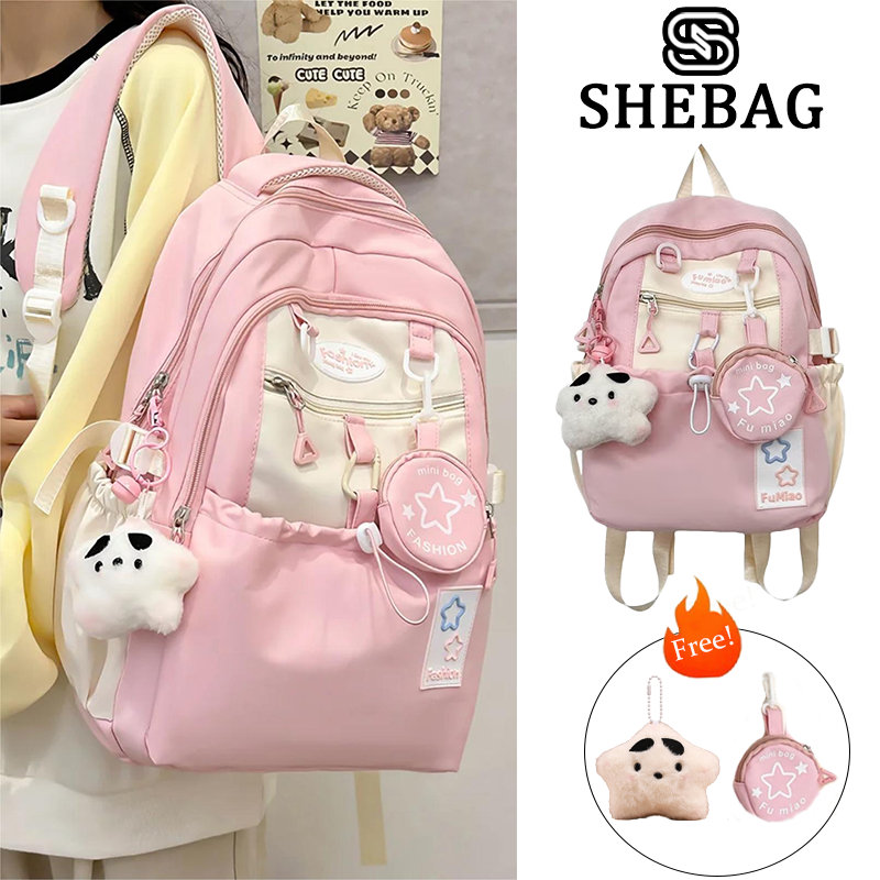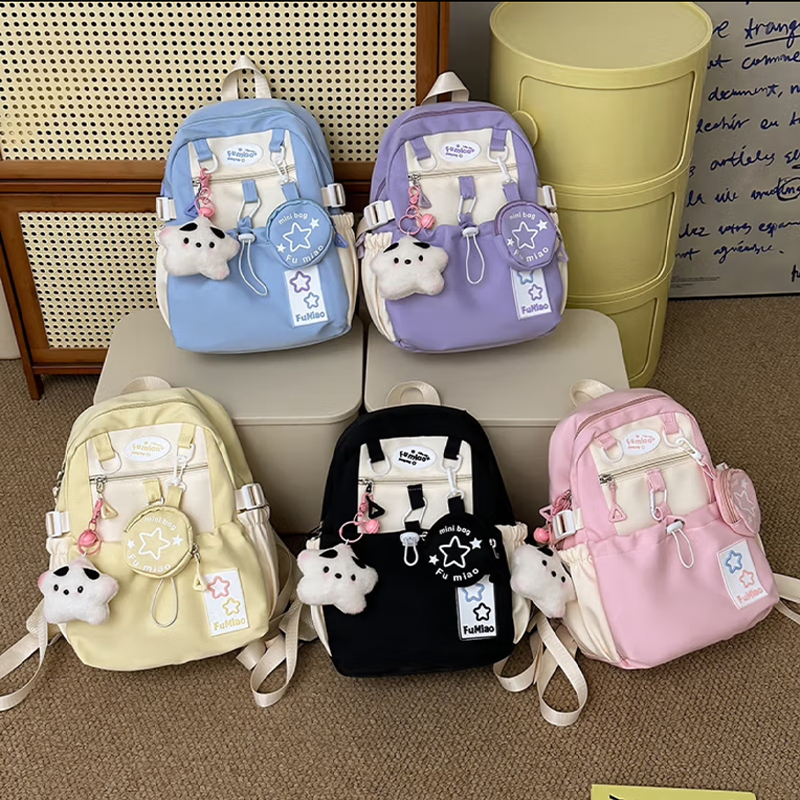 【Widget gratis】Tas Sekolah ins Wanita lucu Tas Ransel Serut Siswa Perempuan volume tinggi tas Bahu Kapasitas Besar korea