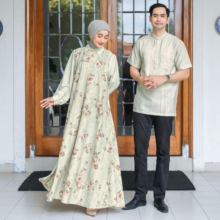 Ventedaily - Niara Couple Baju Couple Gamis Kemeja Suami Istri Couple Lebaran 2025 Motif