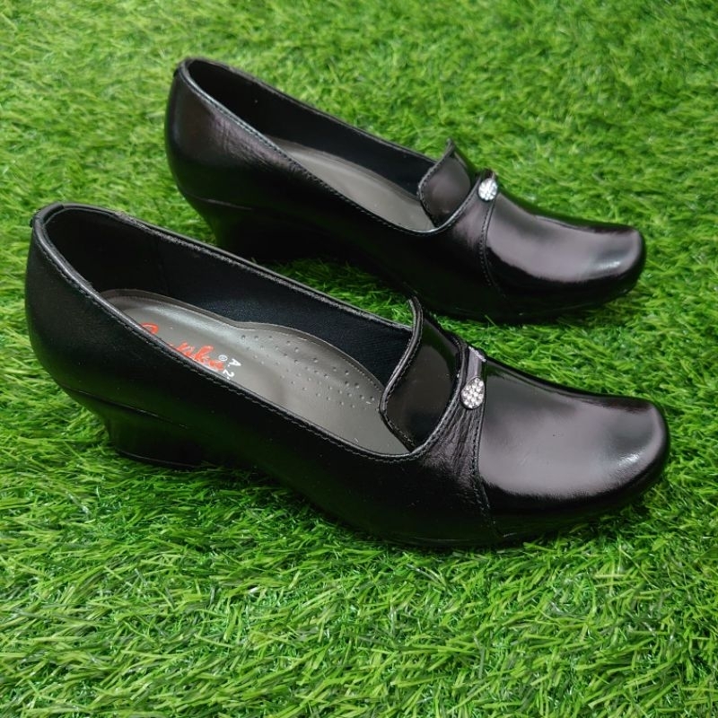 SEPATU PANTOFEL FORMAL WANITA KULIT SAPI ASLI 100 PERSEN - A 21 HITAM ( PRODUKSI SENDIRI )