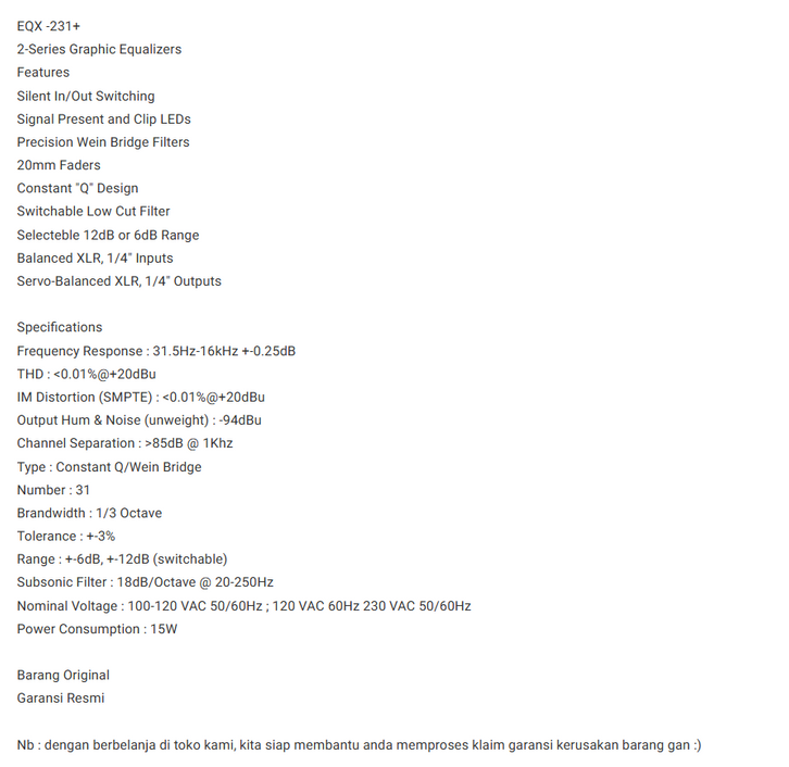 Equalizer Equaliser Zetapro EQX 231+ / 231 Plus Subwoofer Original