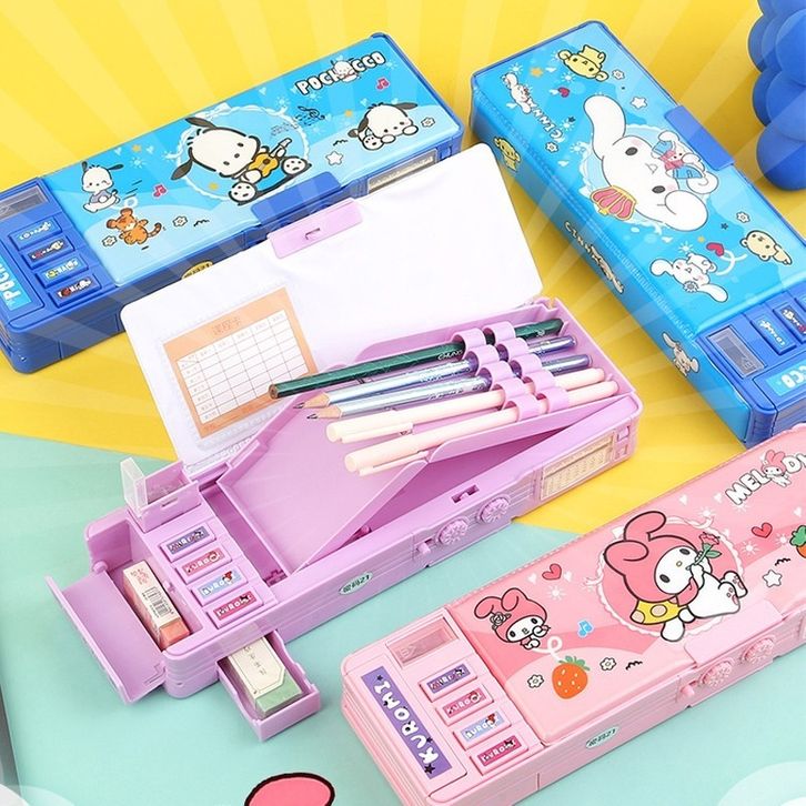 Tempat Pensil Kuromi Password Multifungsi Lapis Ganda Berkapasitas Besar Lucu Sandi Kotak Pensil Tempat Pensil Boneka L