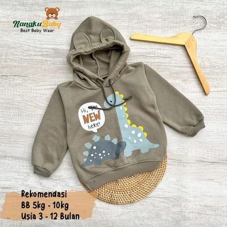 Hoodie Bayi Motif Dino Usia 3-15 Bulan || Mantel Hangat Bayi Motif Kupluk Kuping || Jaket Bayi Hangat SNI