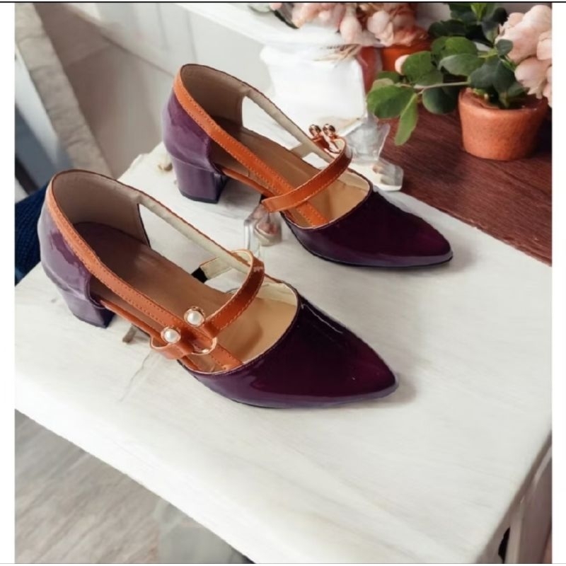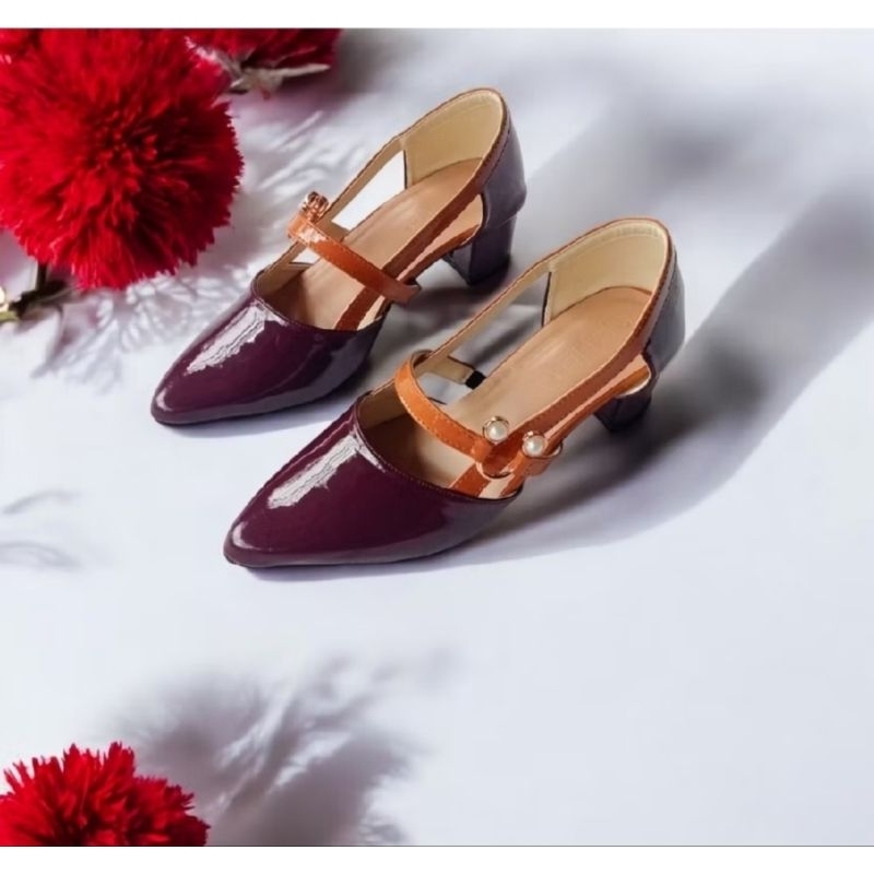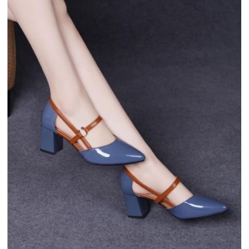 Sepatu Fantofel Wanita Heels Tali Slop Belakang 5 Cm BG01B