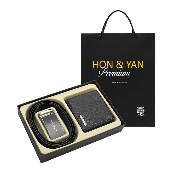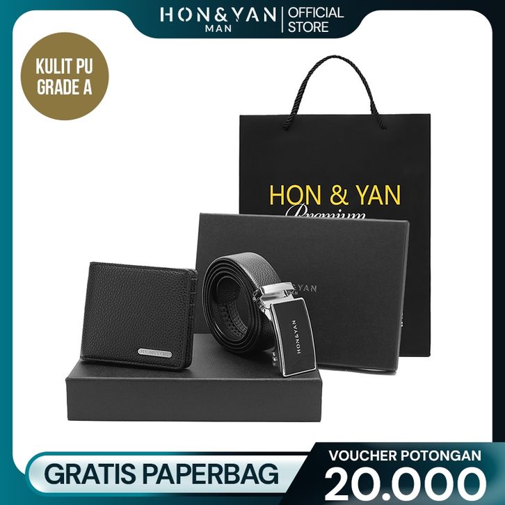 TERLARIS HONYAN MAN GOLD Set Kombinasi Dompet PU Dan Sabuk Kulit Sapi Pria Dapat Dilepas dan Dipotong Pendek - 1