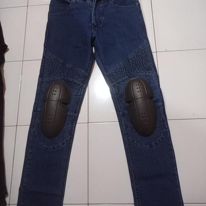 Celana Jeans Denim Pria Celana Bikers Motor Touring Protector Lutut - Biru, 32