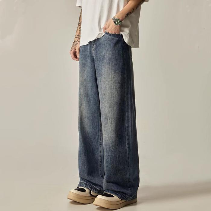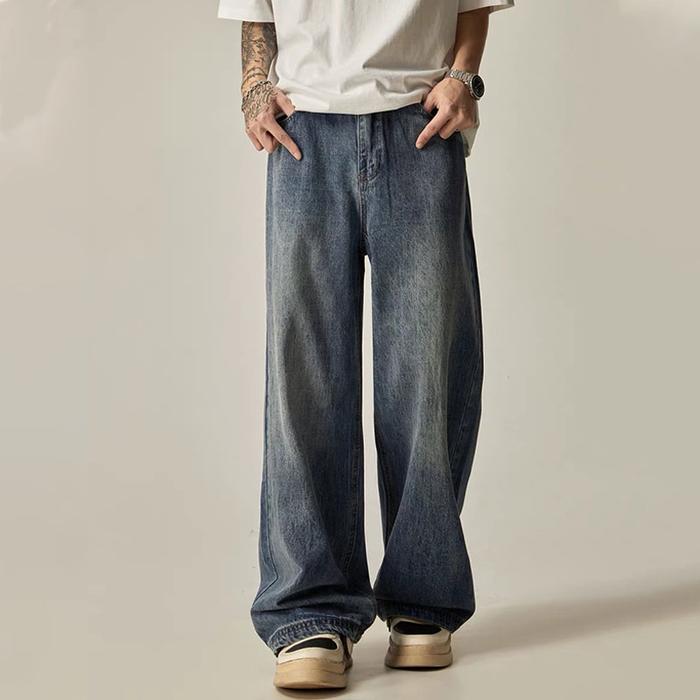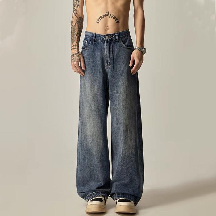 Celana Jeans Pria Reguler Standar Slavik Biobleach OVERSIZE BAGGY LOOSE JEANS PRIA Loose Denim Jeans Pria - 80(Buttons)
