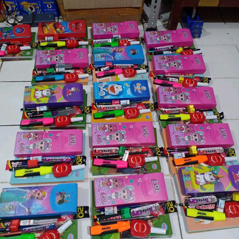 Paket Alat Tulis Sekolah Lengkap 1 ( Tempat Pensil Rakit ) / Souvenir Ulang Tahun