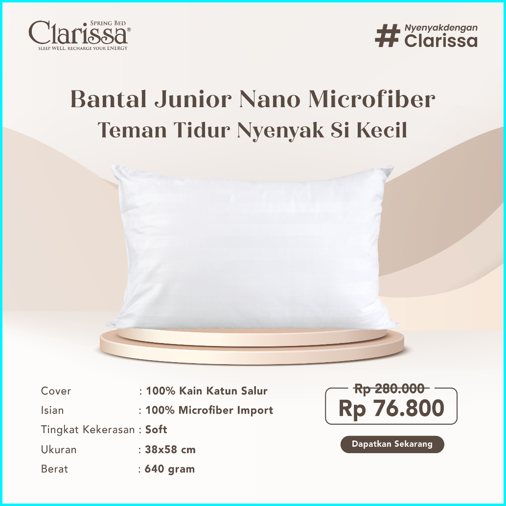 Bantal Junior Anak Nano Microfiber Bulu Angsa Sintetis Uk. 38x58 Cm - Clarissa