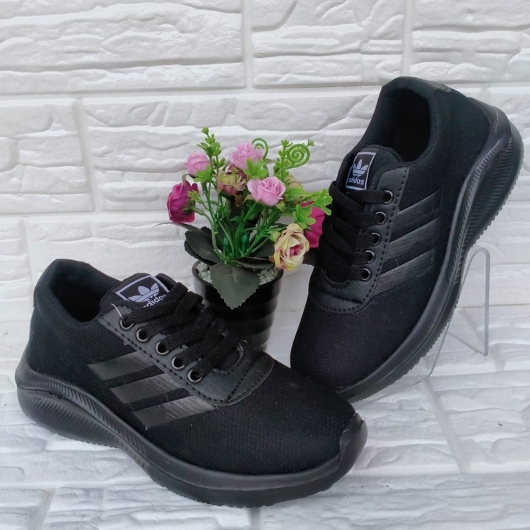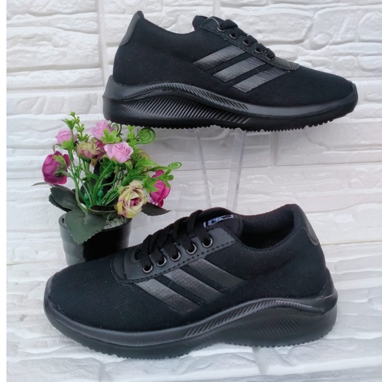 Sepatu Sekolah Anak Perempuan Laki-laki Full Hitam Polos TK SD Size 25 - 37 Bertali Murah