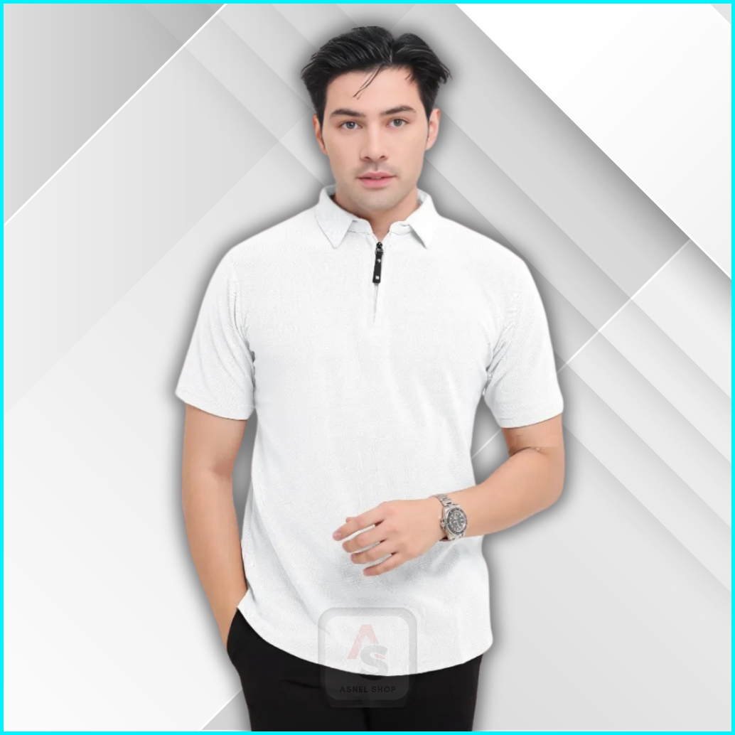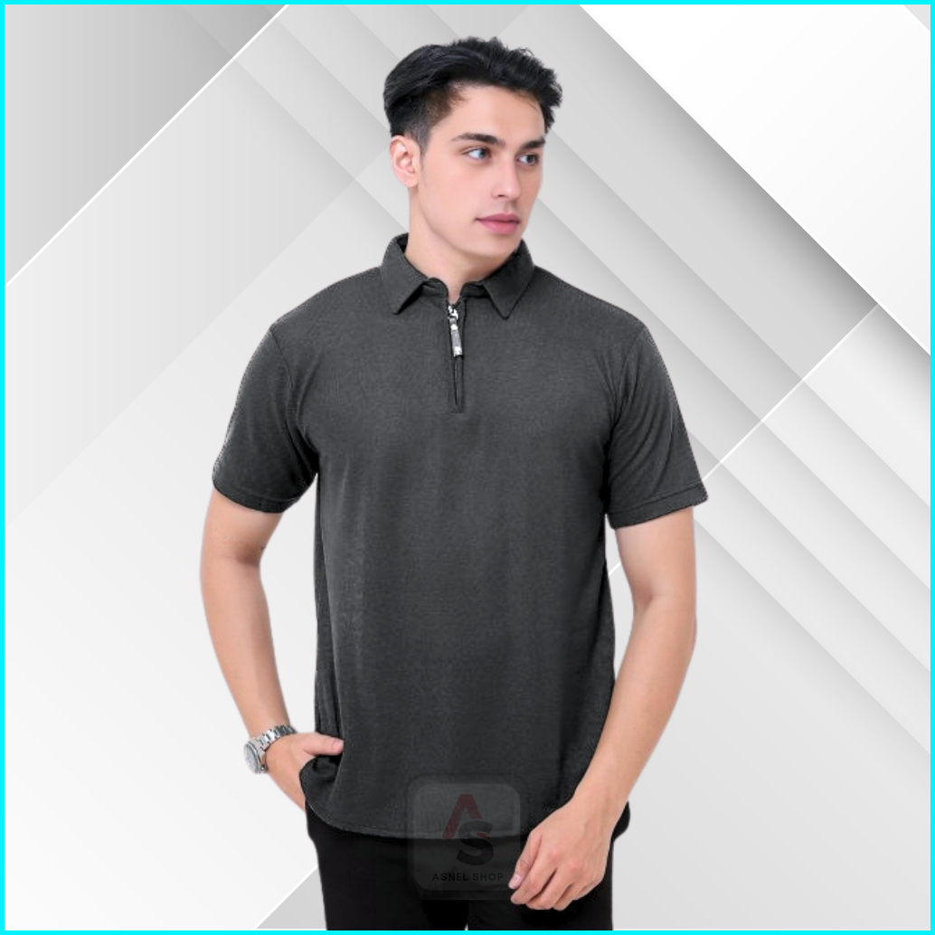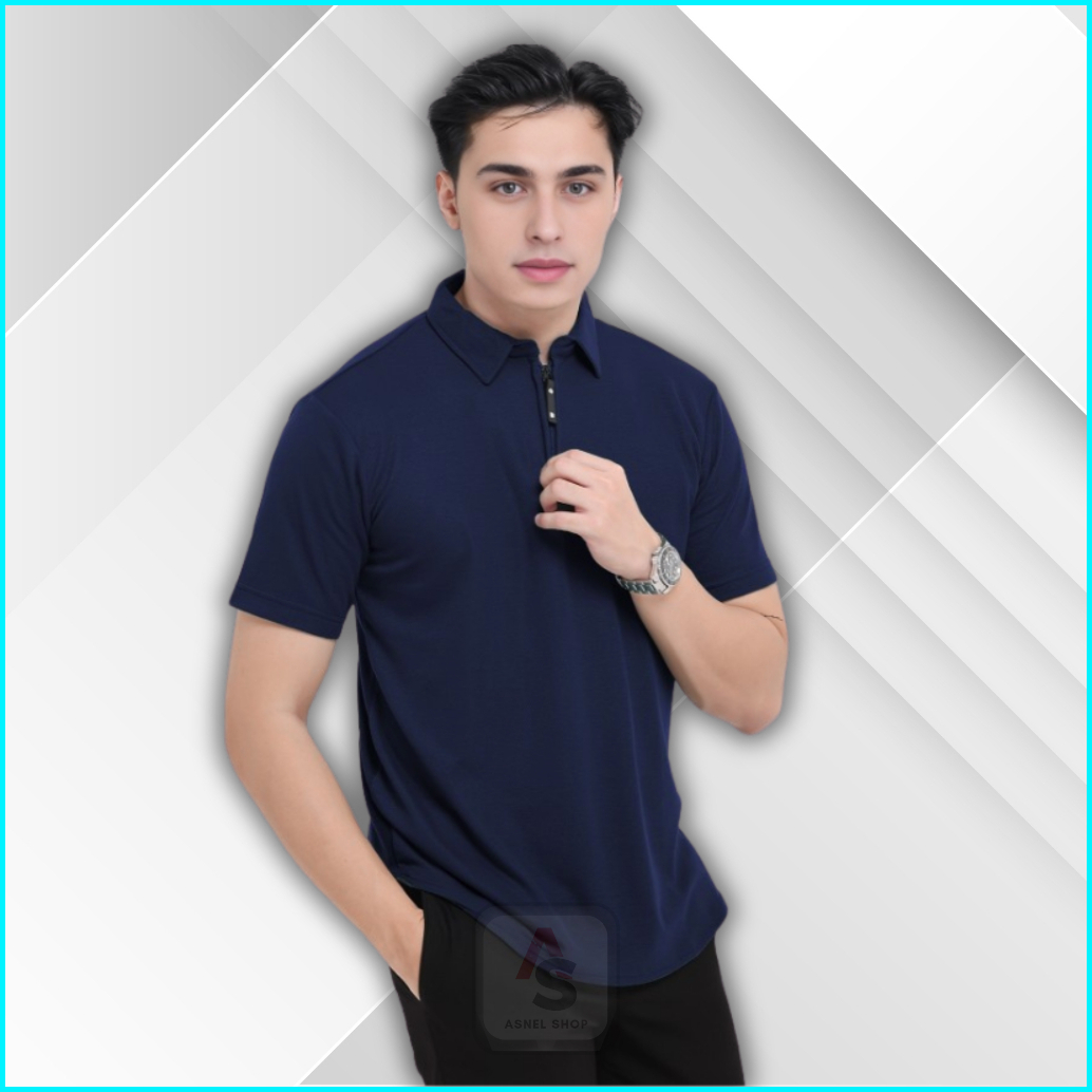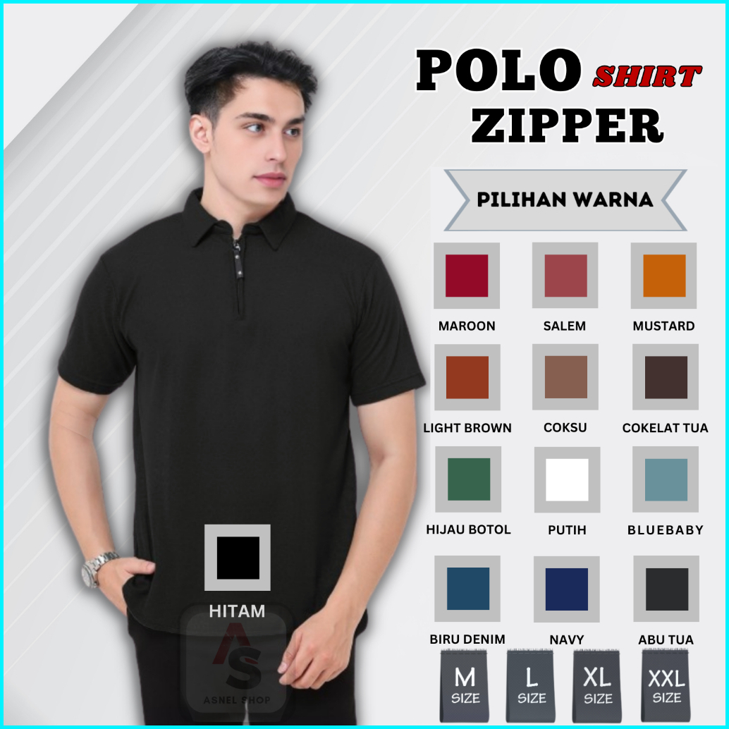 Kaos Polo Zipper Lengan Pendek Pria Dewasa Terbaru 2025 Kaos Kerah Polos Resleting Laki Laki M L Xl Xxl Polo Shirt Zippe