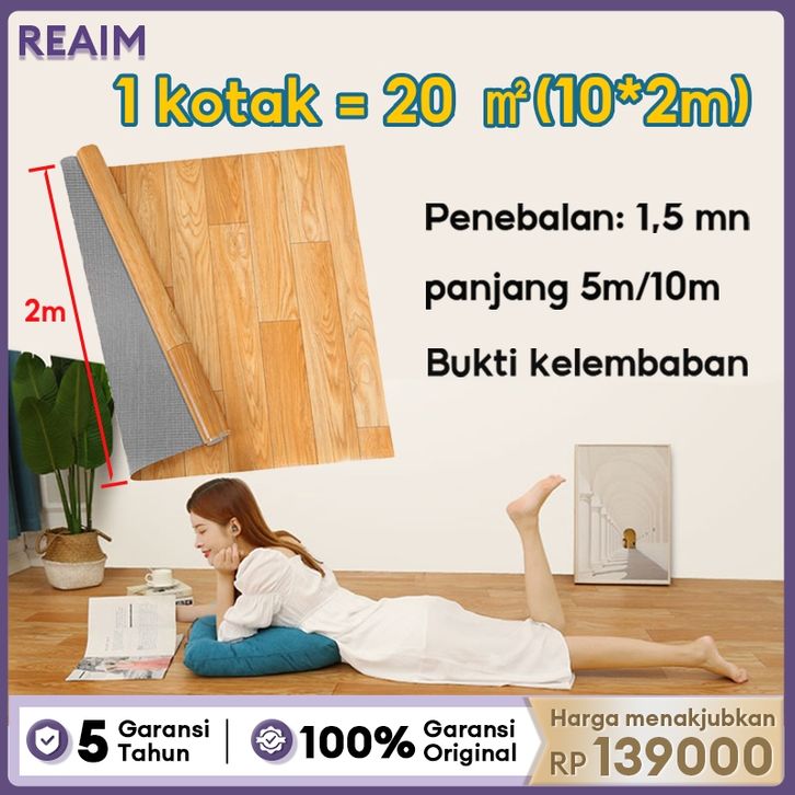 PROMO Karpet Lantai Vinyl Gulungan Penebalan Motif Kayu Lebar 2 Mtr Tebal 1.5MM Bukti kelembaban Tahan Aus Dan M