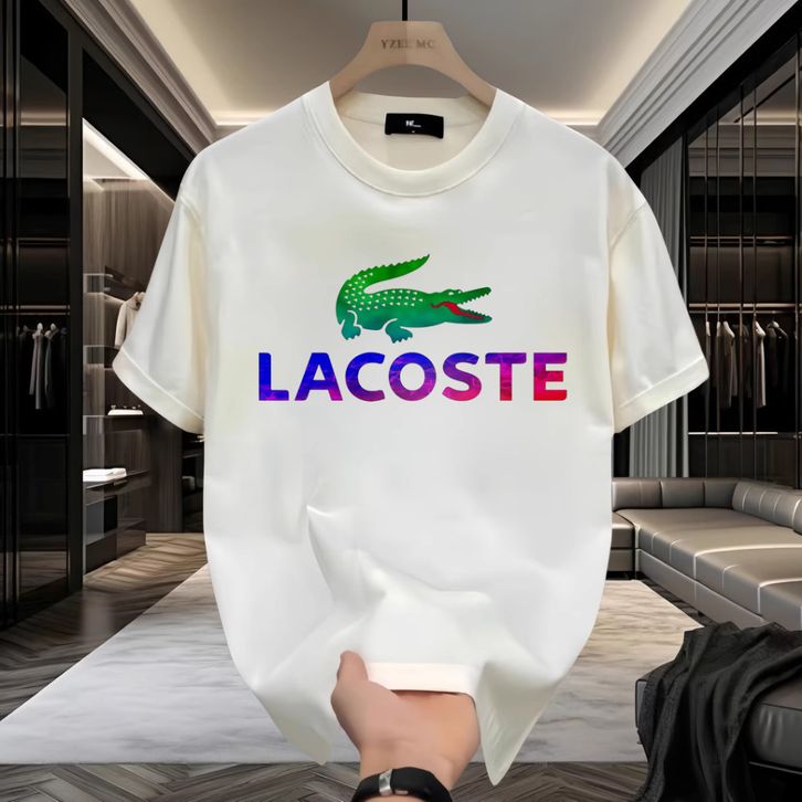 Kaus Pria LACOSTE, Kaus Lengan Pendek LACOSTE Klasik Pertama Musim Panas, Merek Fashion Stasiun Eropa 280G Atasan Kau