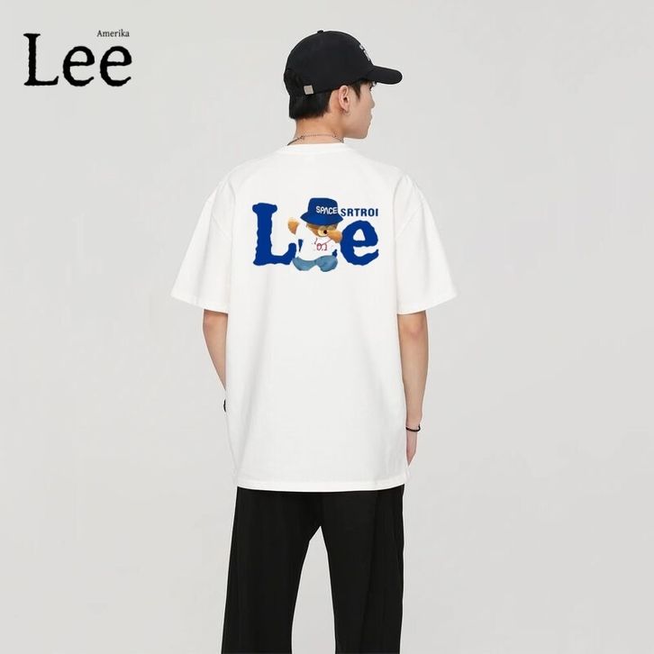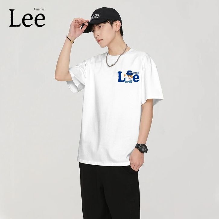 Lee Merek Fashion Asli Kaos Lengan Pendek Katun Tebal Ukuran Besar Unisex