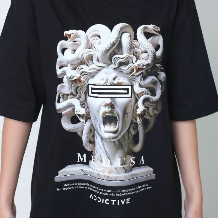 Addictive Premium Oversize T-Shirt Unisex - Medusa, Kaos Oversize Pria Wanita Atasan Pakaian Cotton Combed
