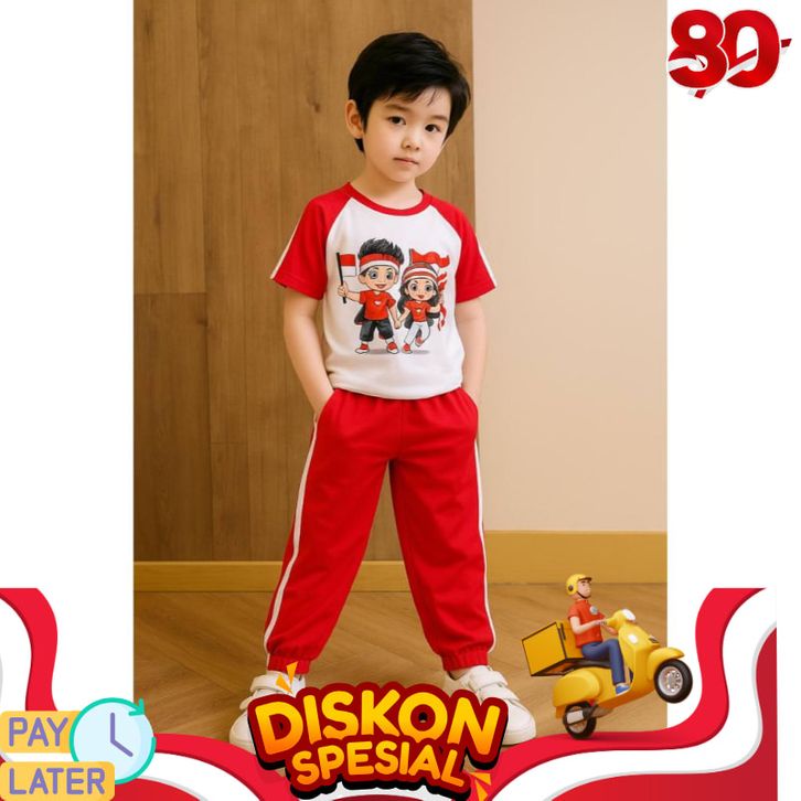 Setelan Baju Merah Putih Anak Kemerdekaan Indonesia 17 Agustus el Kekinian Usia 1 sampai 10 tahun UNISEX