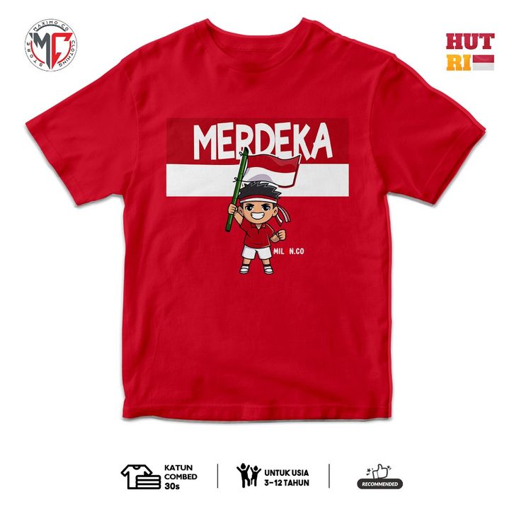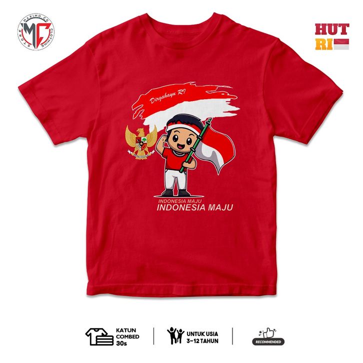 MAXIMO.CO Kaos anak kemerdekaan 17 Agustus lengan pendek merah usia 4 12 tahun bahan katun premium