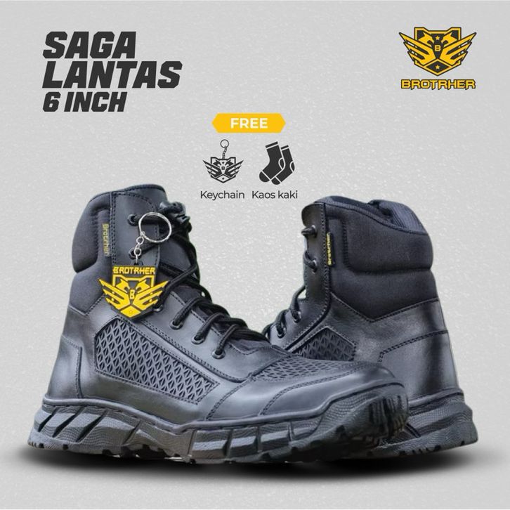 TERLAKU BROTRHER Saga Pendek Kulit Doff Sepatu Lantas Tawon Tali Biasa sepatu pdh 6 Inch udids