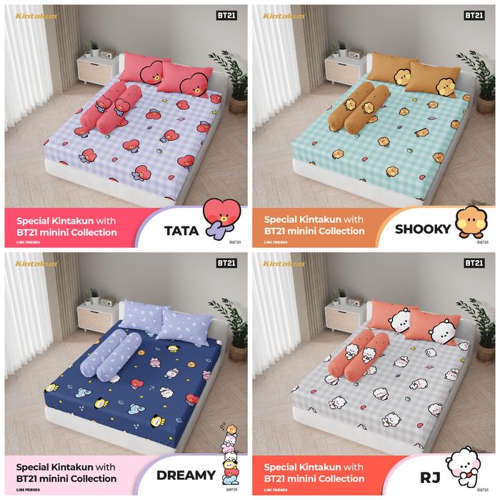 Kintakun Dluxe Sprei NEW BT21 QUEEN Size Minini Edition Uk.160x200 Tinggi 25cm - Shooky