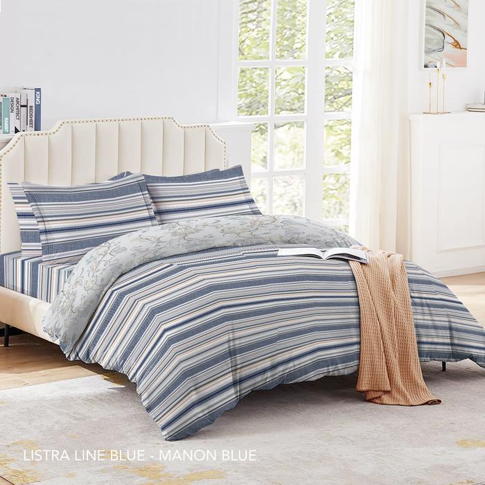 King Rabbit Bamboo Collagen Complete Set Sprei & Bed Cover Luxury Abstract - Listra Line Blue, Set 160x200 cm