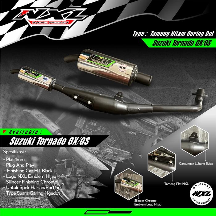 Knalpot racing Tornado gs/gx tipe standar racing premium - Hitam tameng garing logo hijau