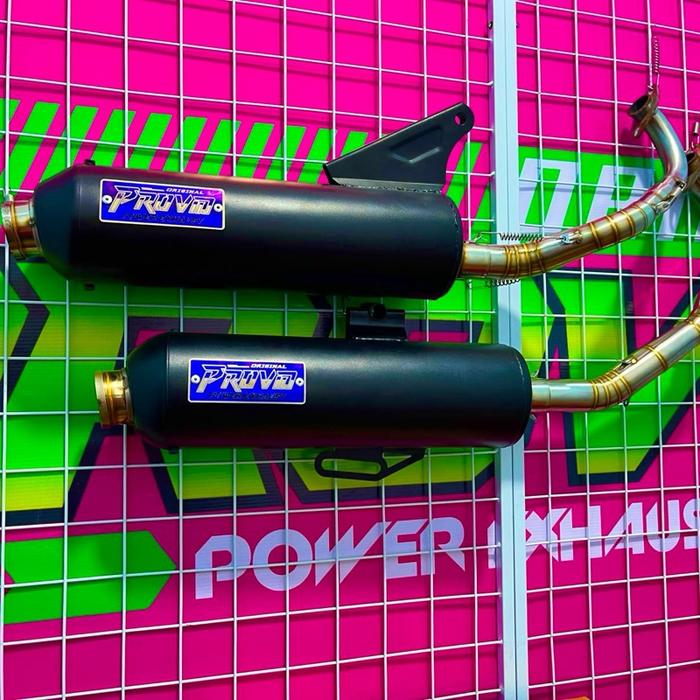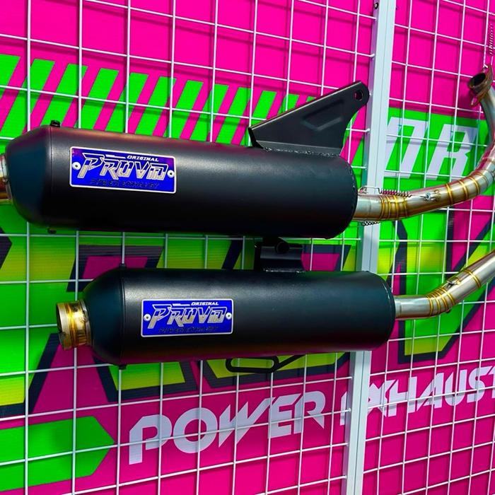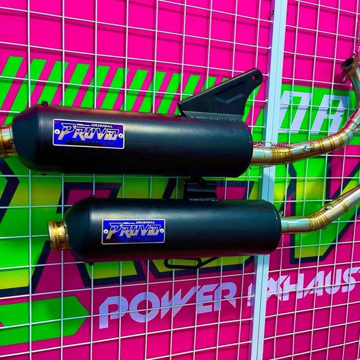 Knalpot type luster moncong shijiro emblem blue Inlet 38 out 50 untuk motor vario beat mio dll - Beat karbu, Sarteng