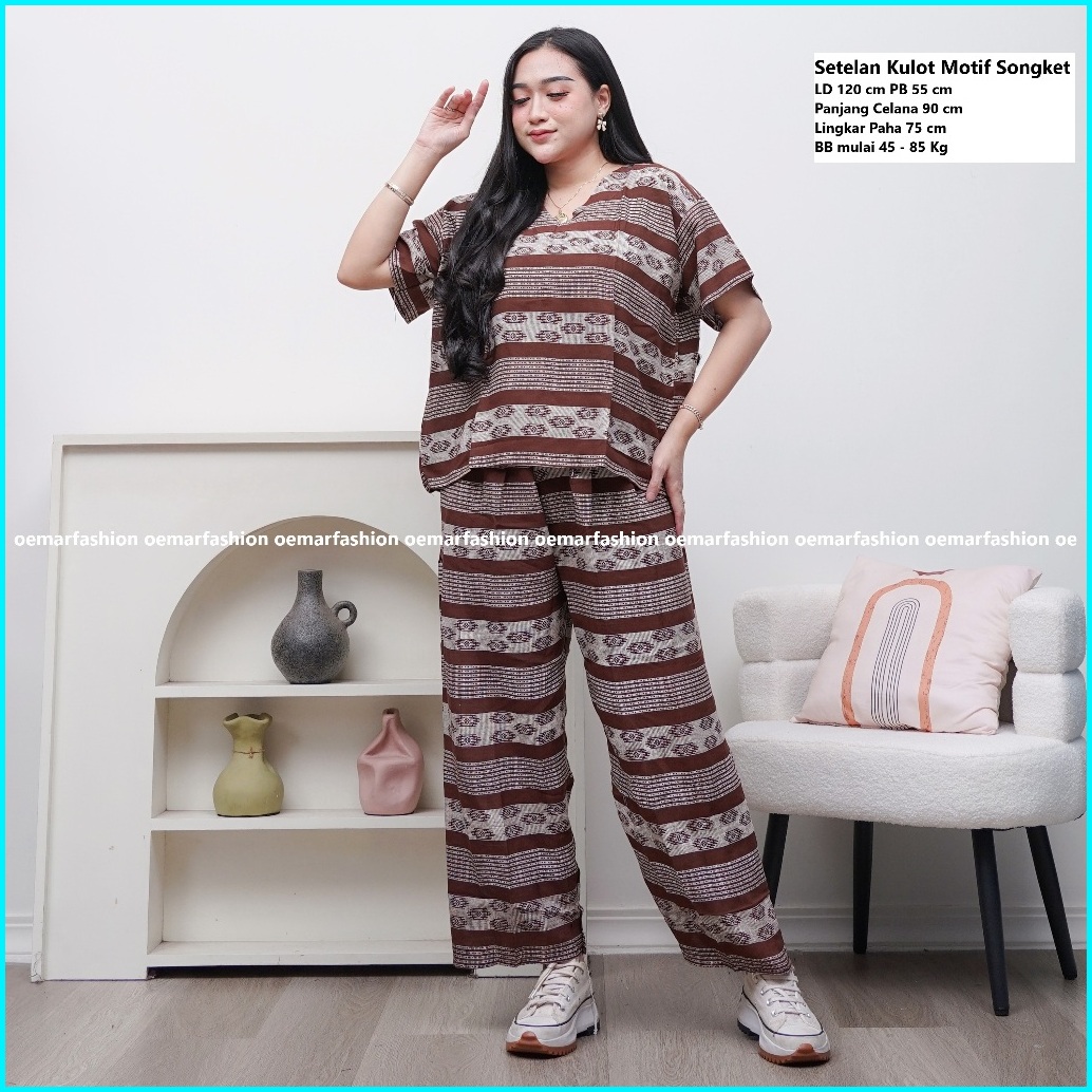 Setelan Celana Panjang Kulot Motif Songket Setelan Batik Ld 120 Panjang Celana 90 Bahan Rayon
