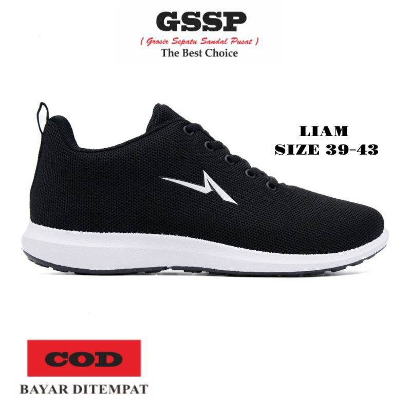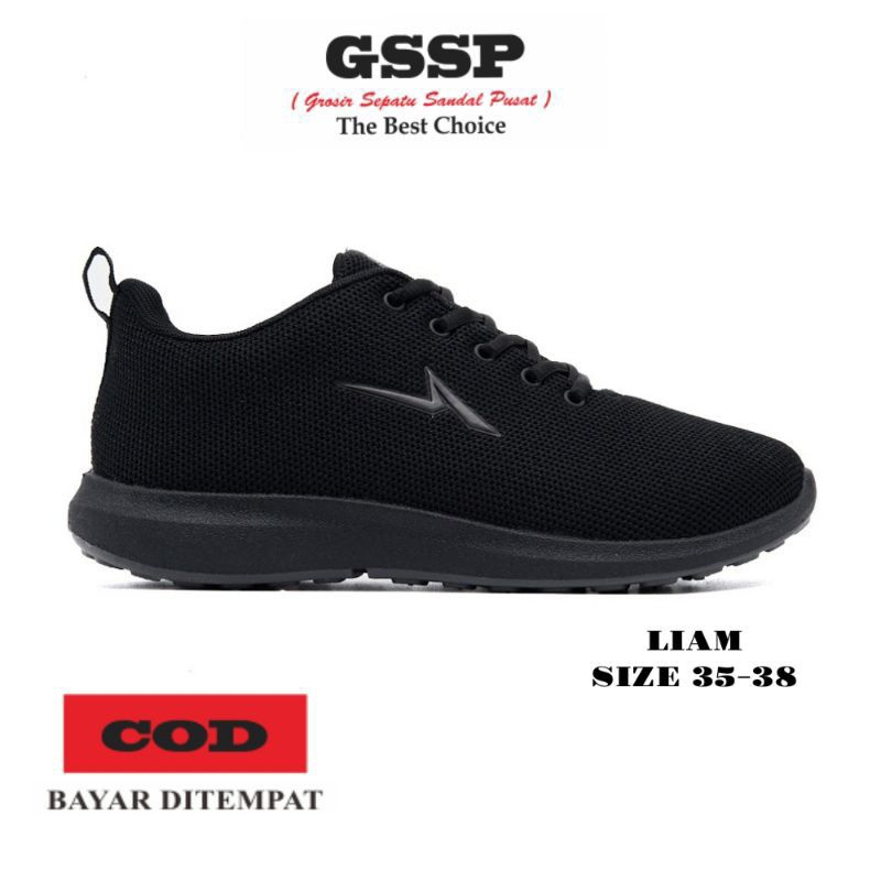 sepatu Sneakers dewasa sepatu ANDO LIAM full hitam Dan Hitam Putih tali size 35-43