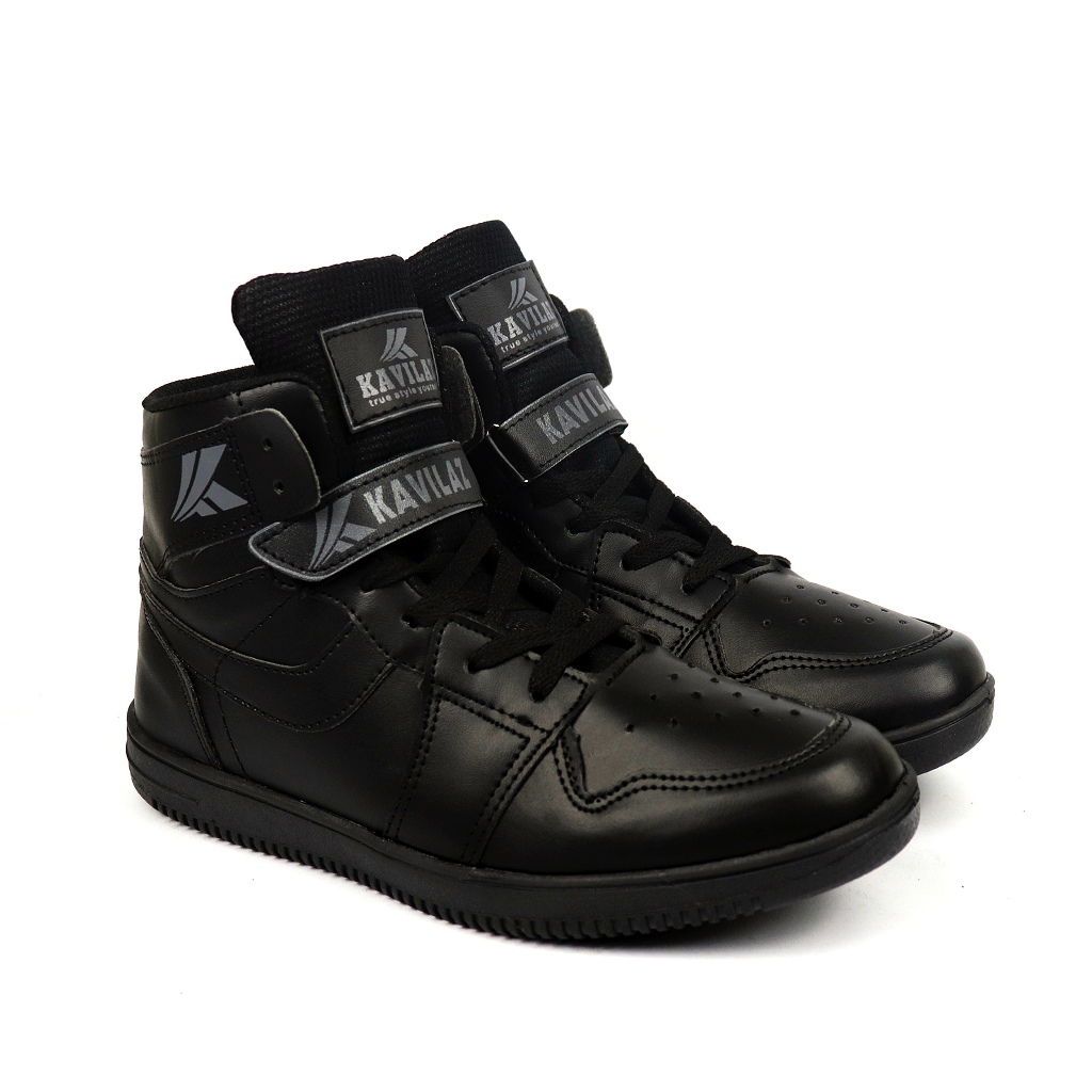 KAVILAZ True Style Yourself Sepatu Boot Anak Laki Laki Hitam Putih Sekolah Tali Combi Perekat