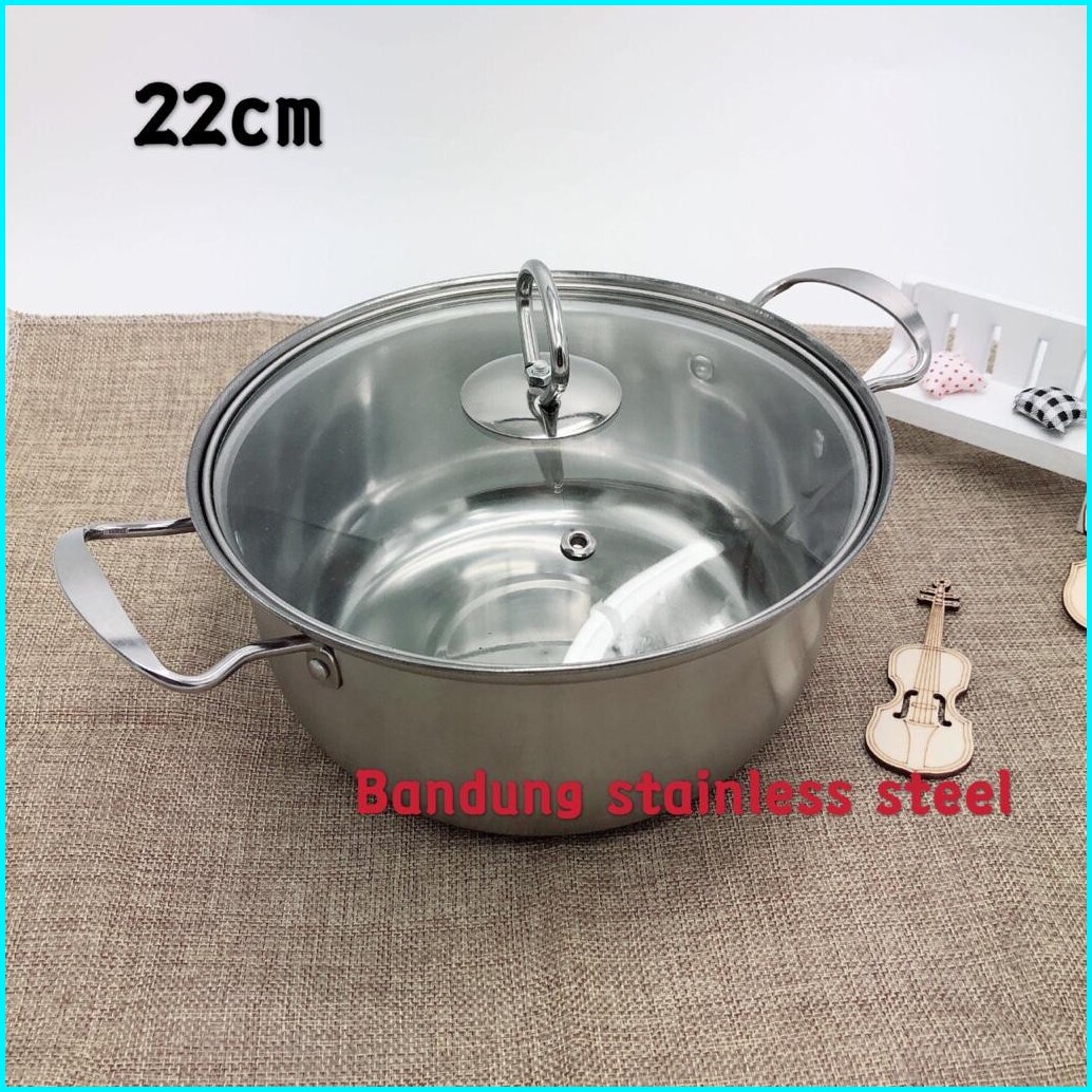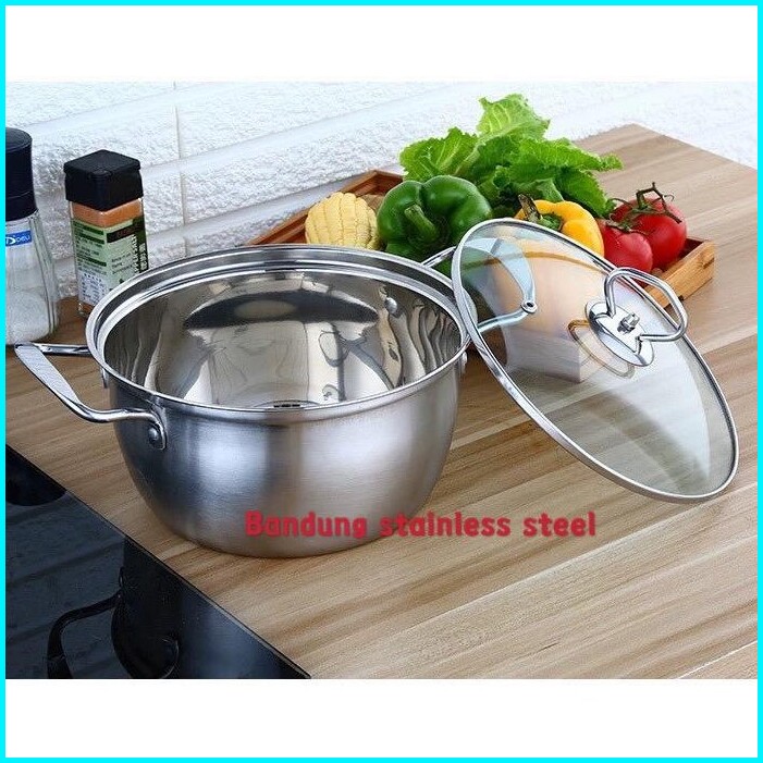 Panci Sup Soup Pot 22cm 24cm Stainless Steel Tutup Kaca Murah Gagang Stainless