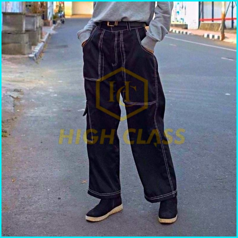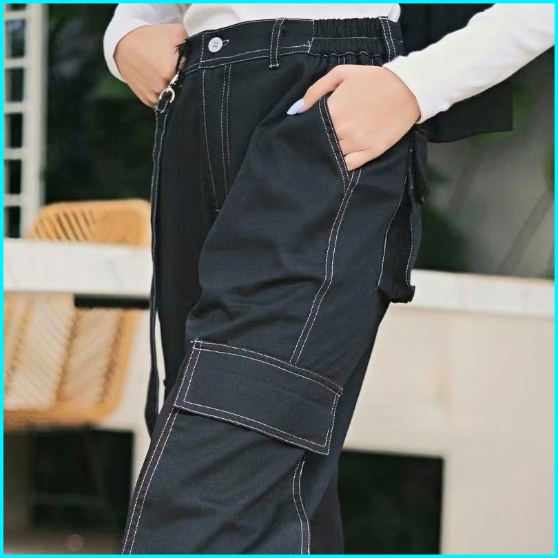 Amber Chino Cargo Wanita Celana Korea Cewek Terbaru Baggy Kulot
