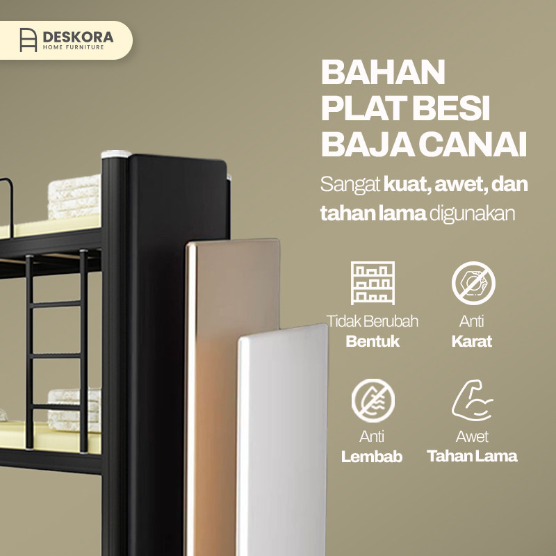 DIPAN TEMPAT TIDUR RANJANG SUSUN 1-2 TINGKAT ANTI KARAT MINIMALIS & KUAT FULL BESI GARANSI | DESKORA