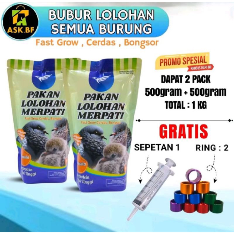 PAKAN LOLOHAN MERPATI BERPROTEIN NUTRISI TINGGI KAN 1KG BONUS SEPETAN & RING 2